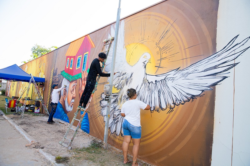 Você provavelmente já se deparou, em algum ponto de Marabá, com uma das telas gigantes assinadas por Bino Souza. O artista visual tem marcado a cidade com seu talento característico e, durante as celebrações do Círio de Nazaré, não poderia ser diferente. Desta vez, os muros da Escola Salomé Carvalho, na Folha 16, receberam a sensibilidade de sua arte. A escolha do local não foi por acaso: a escola é próxima ao Santuário de Nossa Senhora de Nazaré, ponto de encontro entre os devotos e a Rainha da Amazônia ao final da grande festa da fé no próximo dia 19.