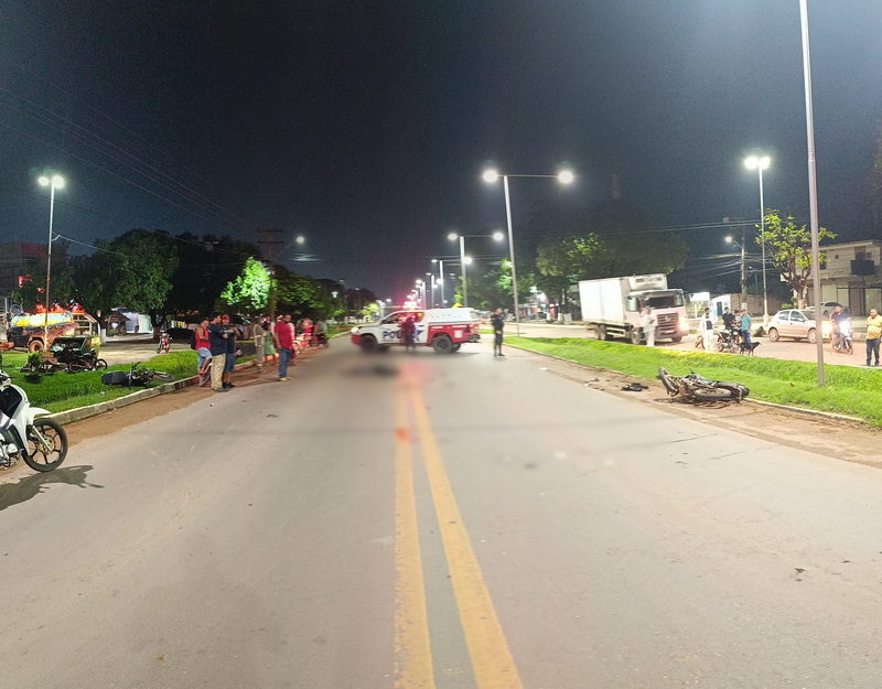 Duas motocicletas da Honda, dos modelos Pop e CG, colidiram na madrugada de domingo (1º) resultando na morte de Flávio Pinheiro Costa Garcês, um dos condutores, ainda no local.