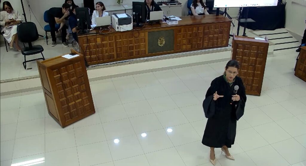 Após a promotora, o assistente de acusação, advogado Diego Adriano Freires, tomou a palavra. Ele afirmou que a imagem de fragilidade apresentada por Sara no tribunal não corresponde ao comportamento que ela exibia em vídeos antigos, publicados em suas redes sociais. Nas gravações, a ré aparece fazendo ameaças, mencionando armas e usando expressões que, segundo ele, reforçam uma postura agressiva.