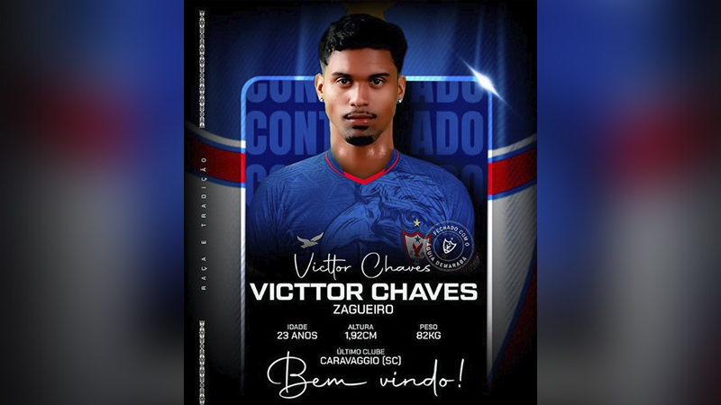 O nono jogador anunciado oficialmente pelo Águia de Marabá para a temporada 2026 é também o mais jovem até aqui. Trata-se do zagueiro Victtor Chaves, de 23 anos. Defensor canhoto, de 1,92m de altura e 82kg, ele é natural de Caxias (MA) e atualmente defendia as cores do Caravaggio (SC).