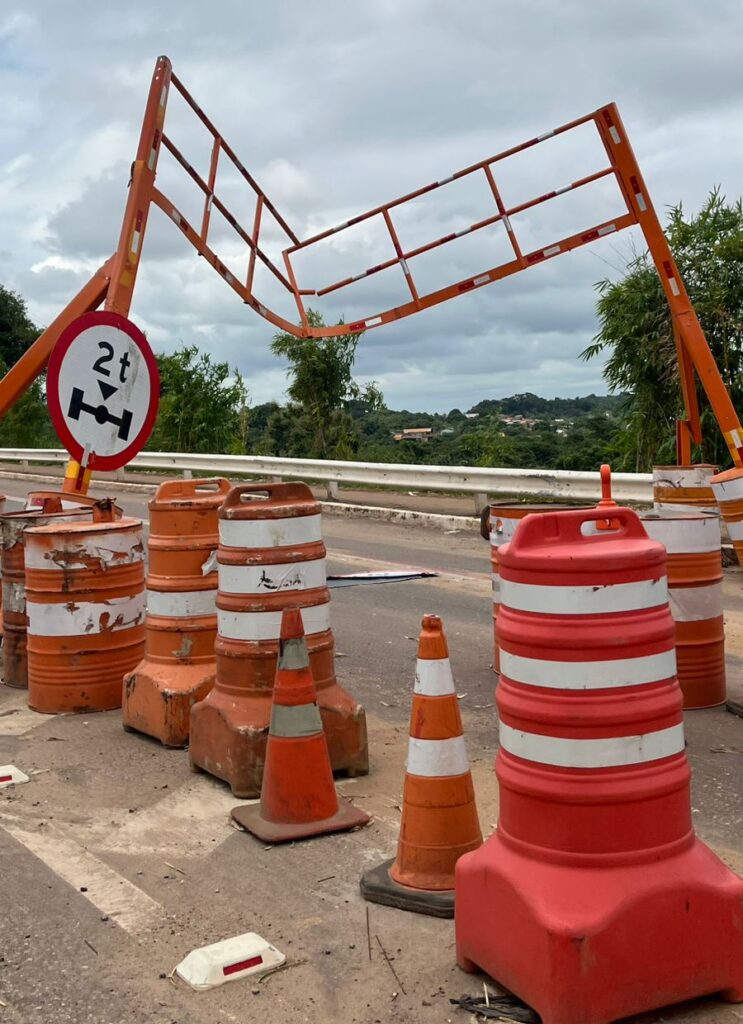 Enquanto o dilema da interdição da ponte se prolonga sem perspectiva de solução, o DNIT segue tendo de refazer o pórtico limitador de altura de veículos que podem acessar a ponte, colocado do lado da Nova Marabá. Esta semana, pela nona vez, ele foi destruído por algum caminhão que não deveria passar pelo local, que é bastante sinalizado.