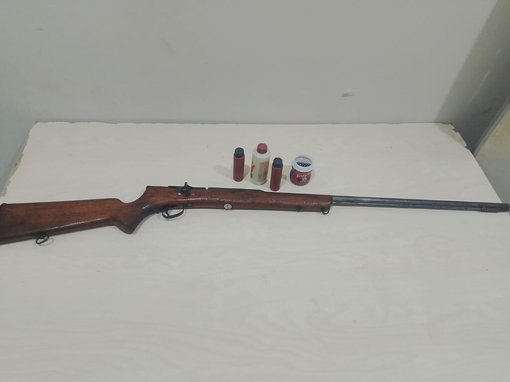 A arma caseira foi encontrada sobre o guarda-roupa em um dos quartos e imediatamente apreendida.