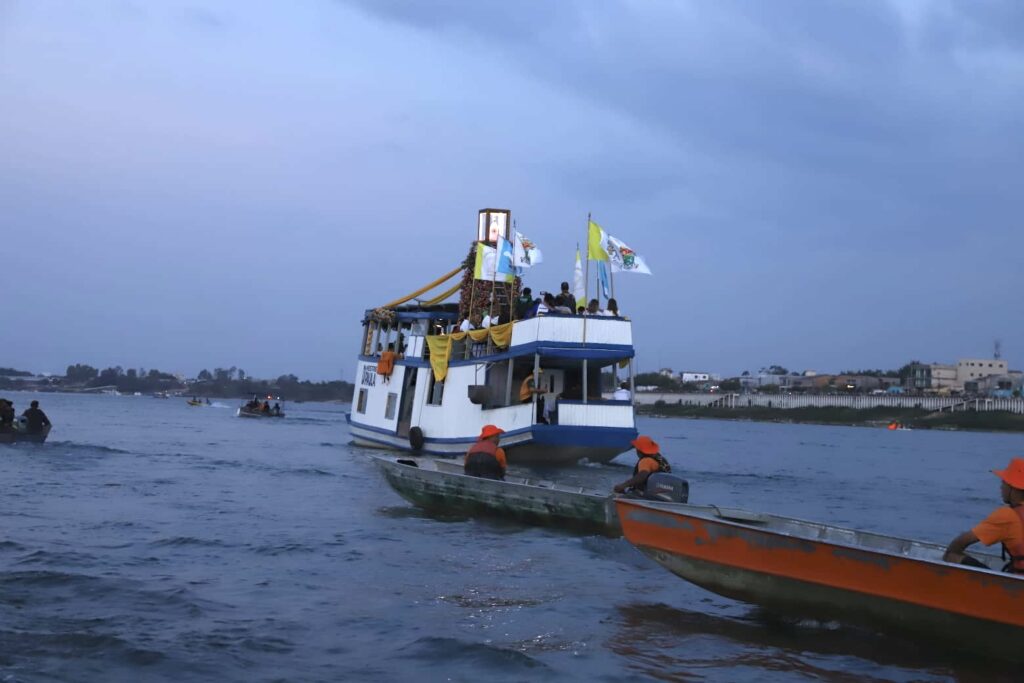Ao chegar à rampa da Colônia Z-30, a imagem foi recebida com aplausos e olhares ansiosos de quem espera o ano inteiro por um momento de intimidade com a mãe de Cristo. Lágrimas silenciosas acompanhavam as orações dos fiéis, que, transbordando de devoção, aguardavam ansiosos pelo fim do Círio fluvial. Atentos ao percurso que a berlinda realizou no Tocantins, os devotos permaneceram na orla da cidade aguardando a Rainha da Amazônia.