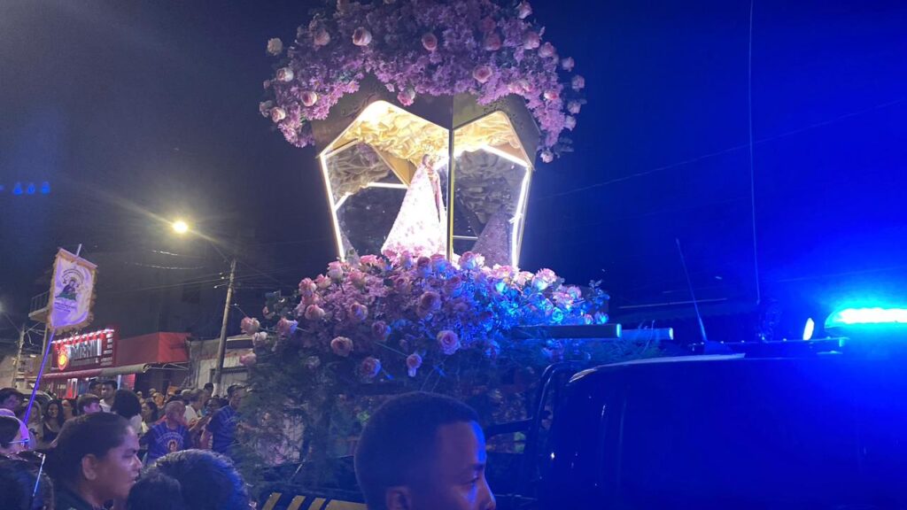 Para finalizar o sábado (18) de fé e devoção, a berlinda que carrega Nossa Senhora de Nazaré chegou à Marabá Pioneira no início da noite. Após uma breve romaria pelo bairro Cabelo Seco, Nazinha se encaminhou para a Praça Duque de Caxias, em frente ao Museu Municipal Francisco Coelho, onde acontece a missa da troca do manto.