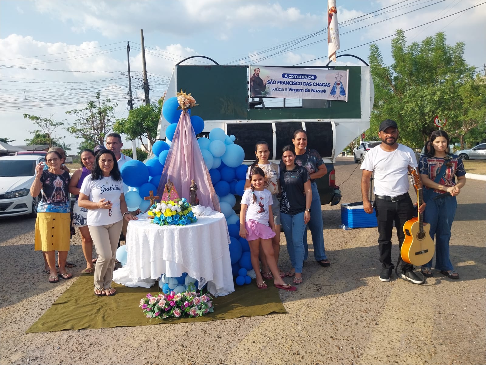 Momentos antes da procissão fluvial, a população já se prepara para a passagem da santa pelas Folhas 16, 15, 14, 23 e 25. Banhados de alegria e fé, católicos e simpatizantes organizaram homenagens para a passagem da imagem peregrina, como a comunidade São Francisco das Chagas e a Vila Militar Presidente Médici. Mais de 15 altares foram contabilizados pela reportagem ao longo do percuso, montados por famílias e empresas que saúdam Nossa Senhora de Nazaré.