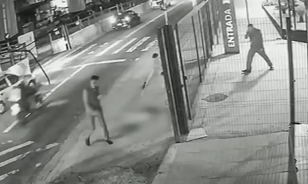 Em seguida, o homem se vira para o animal e faz vários disparos com um revólver. Ele fugiu do local.