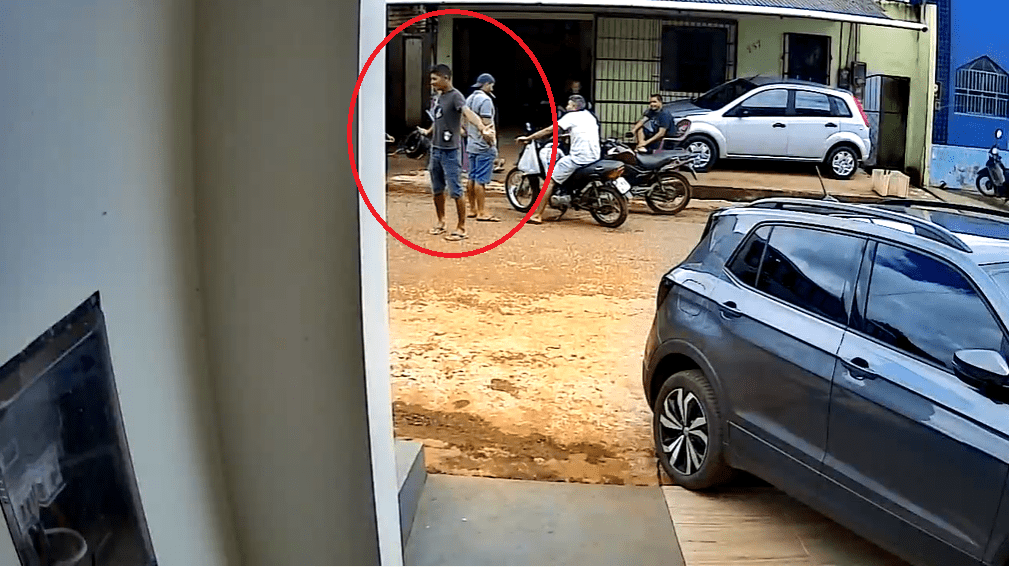 Leia mais:A vítima Nilton Ferreira, conhecida como “Dunga”, segura um capacete e conversa com um grupo de pessoas. Um homem passa pelo local e os dois trocam algumas palavras, no que as testemunhas relataram que era continuação de um bate-boca ocorrido mais cedo entre os dois. O assassino sai de cena, mas é possível ver que a vítima continua discutindo com ele. Em seguida, ouve-se um disparo de arma de fogo. A vítima põe a mão no peito, caminha alguns passos e cai em cima da calçada.