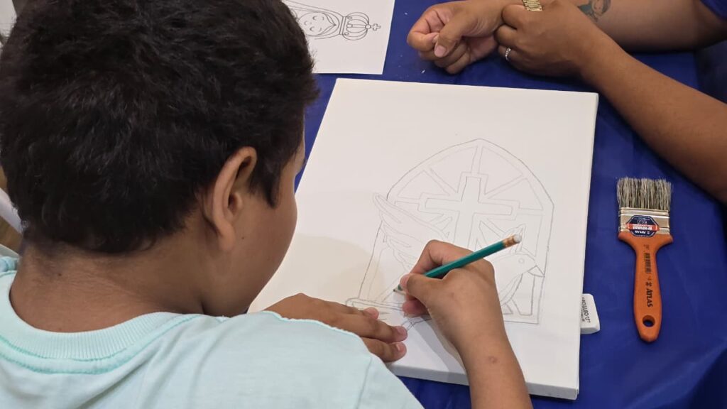 “Nós sentimos essa necessidade aqui em Marabá, porque todos os anos, sempre que é realizado o Círio, nós observamos que esse era um público que precisava de uma atenção especial. Pessoas com deficiência, crianças atípicas… e nós trouxemos esse projeto com o objetivo de proporcionar esse acolhimento. Além de oferecer essa parte do estímulo artístico, da oficina para criação dessas telas, nós pensamento em oferecer um camarote acessível, para incluir esse público de maneira mais adequada na romaria”, explica o coordenador do projeto Ruan Matheus. “Porque nós entendemos que essas famílias também têm sua fé, também têm necessidade de estar na procissão de Nossa Senhora”.