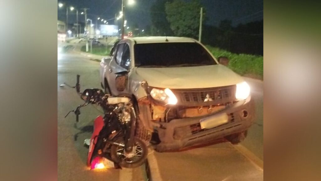 Um acidente de trânsito envolvendo uma caminhonete e uma motocicleta foi registrado na noite de sábado (13), no cruzamento da via Faruk Salmen, nas proximidades de um posto de combustíveis, em Parauapebas. Uma pessoa ficou ferida. O nome da vítima ainda não foi divulgado pela polícia.