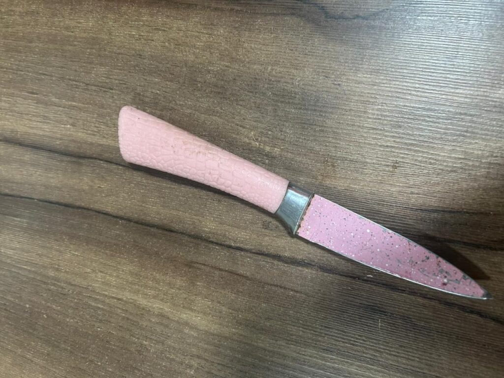 Uma faca de cor rosa foi apreendida e apresentada na delegacia. O caso está sendo investigado pela Polícia Civil.