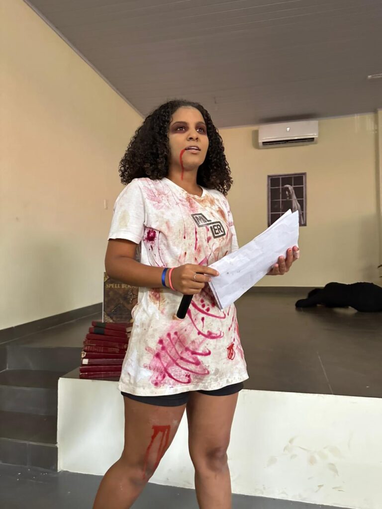 A luz se apagou, um sussurro percorreu a sala, e os olhos atentos dos alunos esperavam… Era mais do que teatro: era literatura viva. Inspirados na obra de Suellen Cordovil, estudantes do ensino médio da Escola Estadual de Ensino Integral Dr. “Gabriel Sales Pimenta”, que fica em Morada Nova, mergulharam no universo das lendas e dos contos de terror brasileiros.