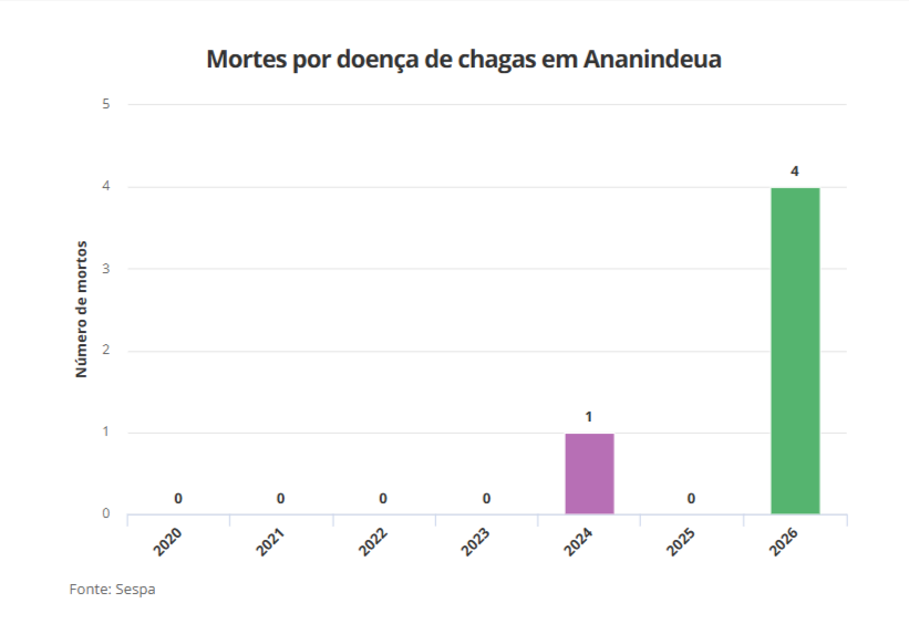 A cidade de Ananindeua, na Grande Belém, registrou quatro mortes por doença de chagas em 2026. O número é maior que todos os óbitos registrados nos últimos cinco anos no município. Diante do avanço da doença, o Ministério da Saúde classificou o cenário como surto.
