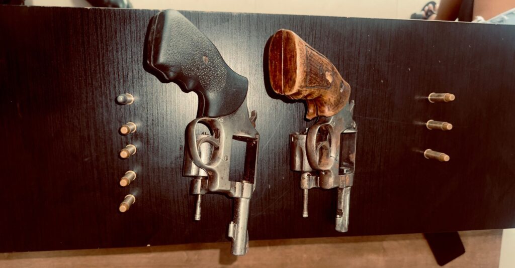 Com apoio da equipe do Grupo de Prontidão e Apoio (GPA), os policiais localizaram o segundo suspeito e apreenderam mais um revólver calibre .38, desta vez com numeração não identificada, além de cinco munições intactas.