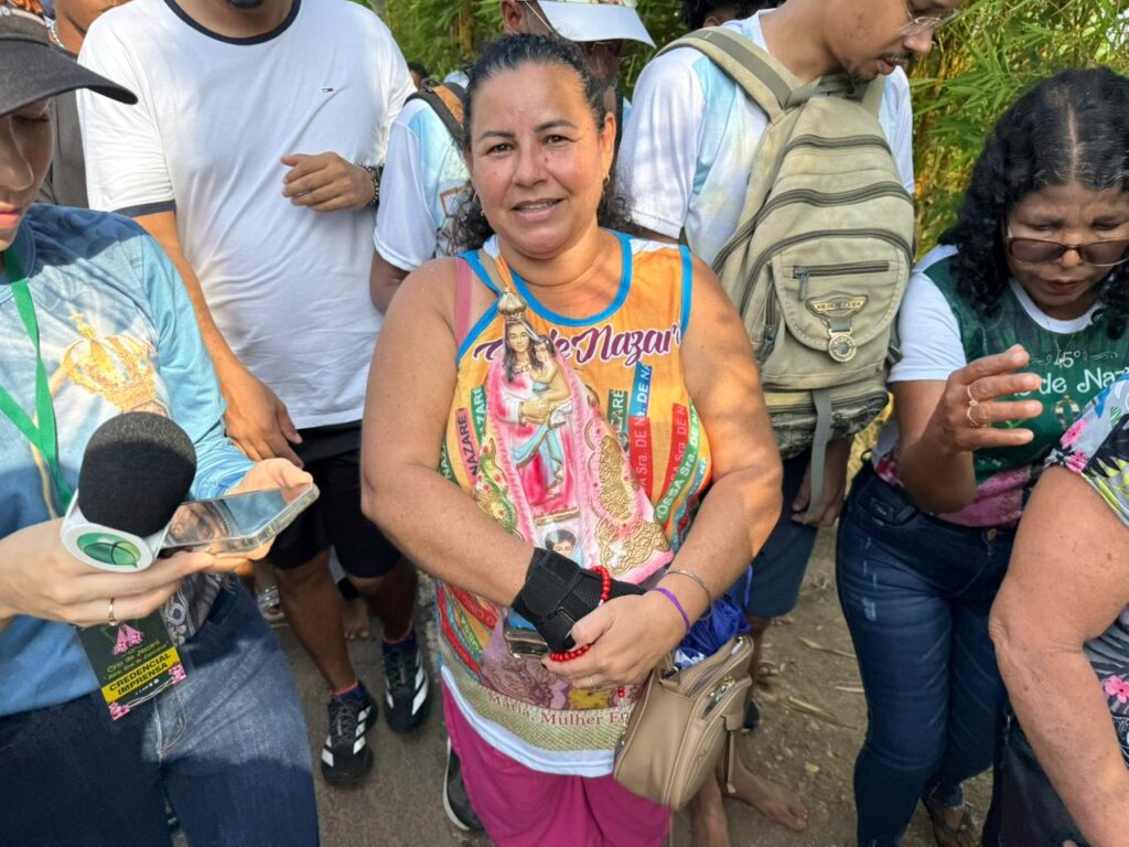 Uma das vozes que ecoou em meio à procissão foi a de Lucimar Bezerra, moradora de Marabá, que há 26 anos renova anualmente sua benção durante o Círio. Emocionada, ela segura uma imagem de Nossa Senhora de Nazaré no peito, símbolo de uma promessa alcançada.