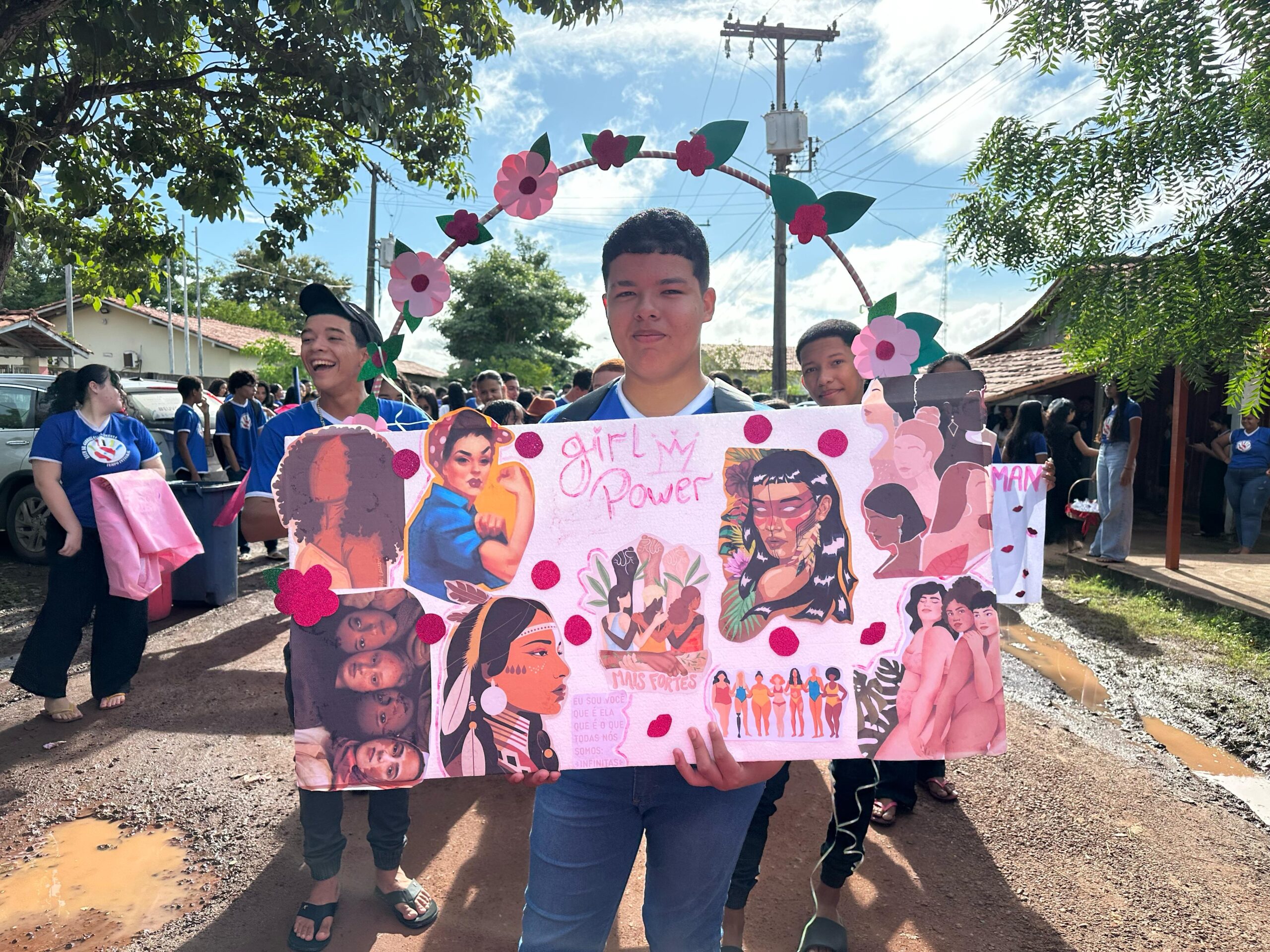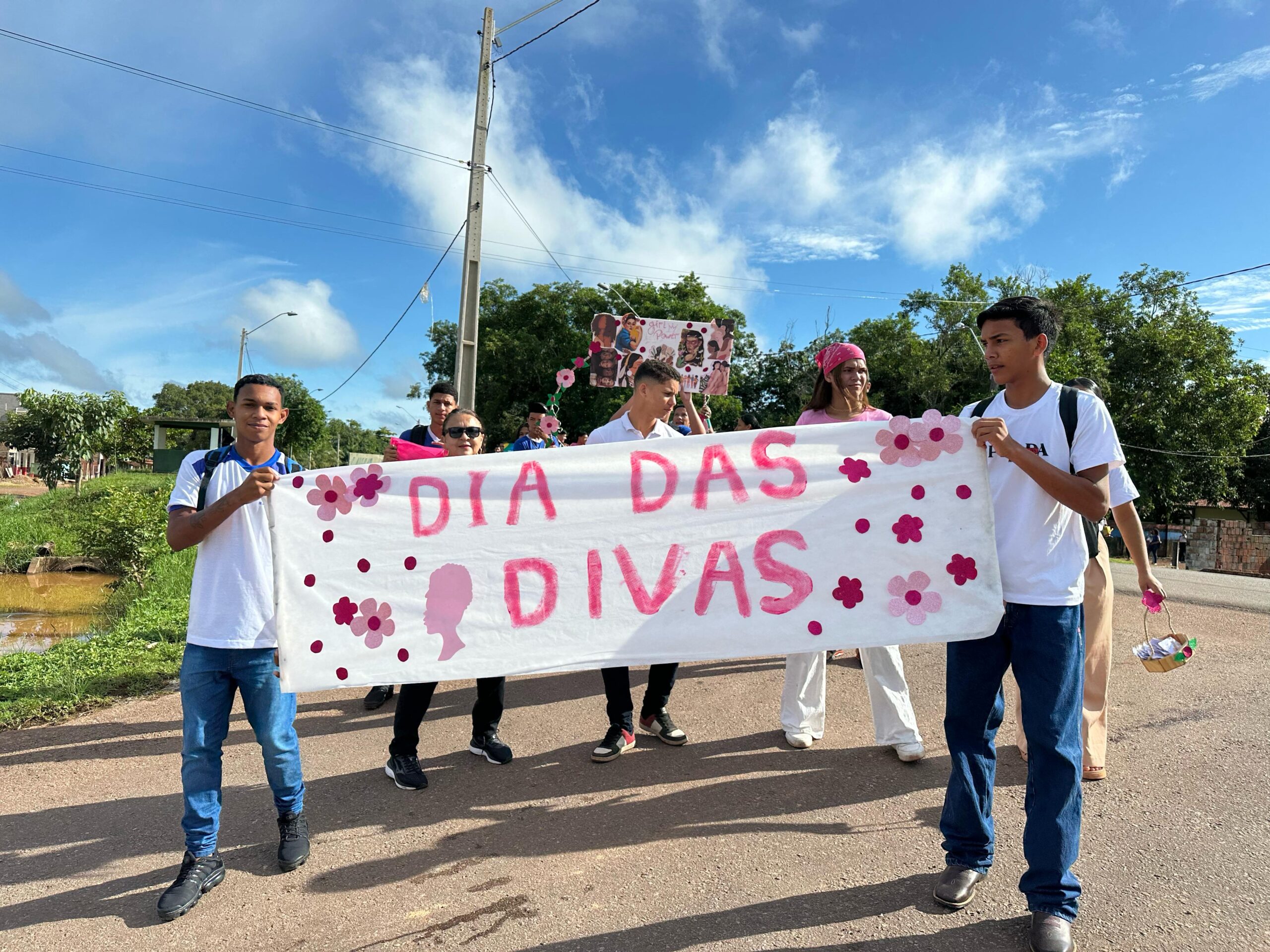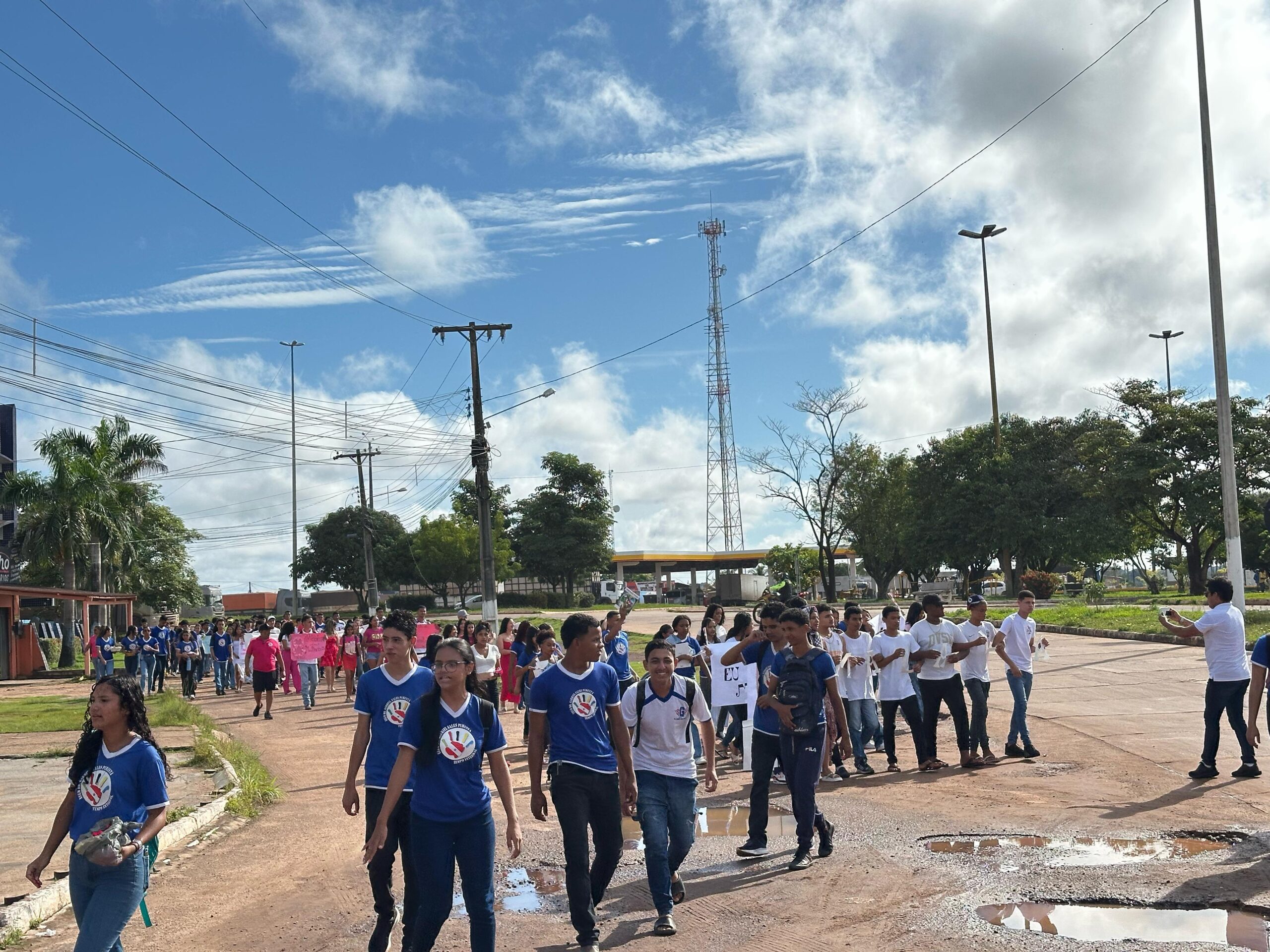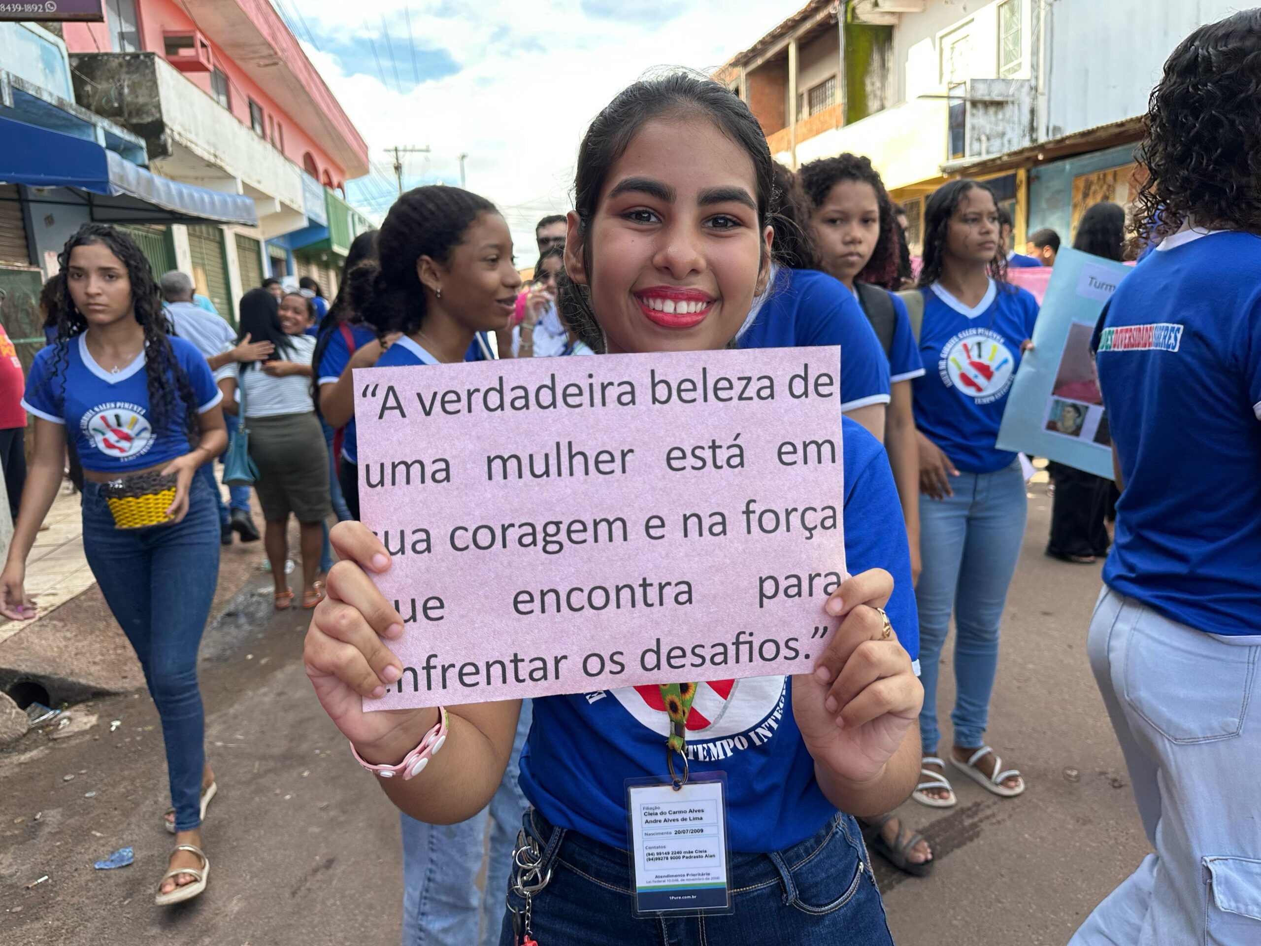 Estudantes, professores e a gestão da Escola Estadual de Ensino Médio de Tempo Integral “Dr. Gabriel Sales Pimenta” participaram na manhã de hoje, sexta-feira, 7, de 1,5 km de caminhada nas ruas do Bairro Morada Nova, em Marabá, sudeste estadual, em alusão ao Dia Internacional da Mulher, comemorado amanhã, dia 8 de março. Com cartazes e faixas em mãos com frases que enaltecem a mulher, os alunos distribuíram brindes para a comunidade e também se caracterizaram de figuras femininas importantes na história. No percurso, populares registraram o momento e receberam o carinho dos discentes. O DMTU (Departamento Municipal de Trânsito e Transporte Urbano) deu apoio durante o percurso, para evitar acidentes.
