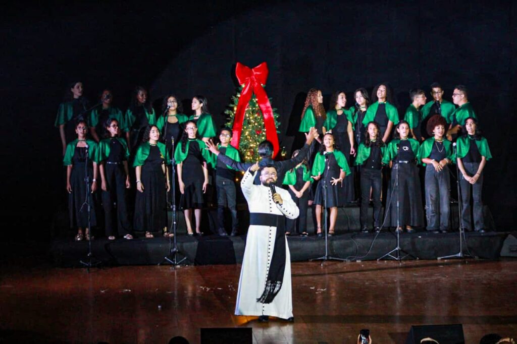 Na noite do último dia 16, o palco do Teatro Municipal em Marabá foi transformado em um cenário de fé e arte com a apresentação do espetáculo de Natal “A Manjedoura e o Madeiro”, uma realização da Paróquia São José Operário. O evento, dividido em duas sessões, atraiu um público de aproximadamente 600 pessoas, que prestigiaram uma produção grandiosa e emocionante sobre o verdadeiro sentido do Natal.