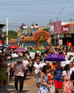 Ao longo de todo o trajeto, a emoção era visível nos rostos dos devotos, que entoavam cânticos e faziam orações em agradecimento. Famílias inteiras caminhavam unidas, muitas delas descalças, em um poderoso testemunho de fé. Alguns fiéis carregavam tijolos como forma de pagamento de promessas, enquanto outros seguravam imagens e terços, expressando sua gratidão a Nossa Senhora de Nazaré. Em cada rua, moradores decoravam suas calçadas e acompanhavam, com lágrimas e acenos, a passagem da imagem da santa.