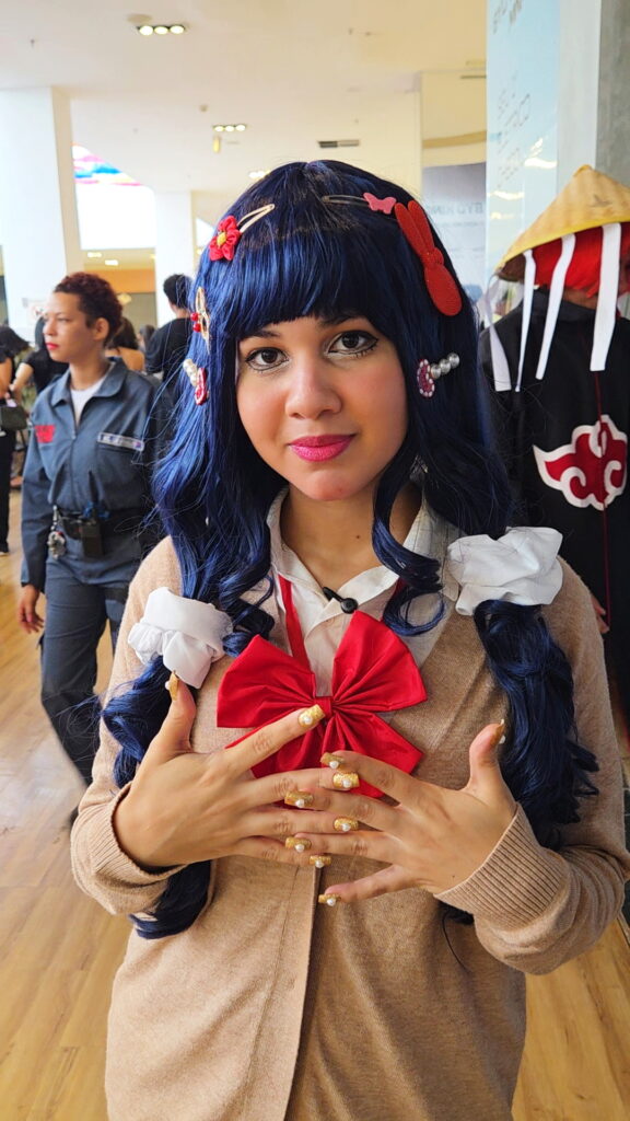 A paixão pela caracterização também foi compartilhada por Melissa Oliveira, de 24 anos. “Eu acho muito interessante qualquer evento que mostra a cultura do próximo, mostra uma cultura diferente da nossa, mostra diferentes tradições. Eu acho super divertido isso, eu sou muito do cosplay, dos animes. Hoje eu estou aqui no estilo Gyaru, que é um estilo que globalizou por aí, ficou super famoso. É a primeira vez que eu estou usando e eu estou amando isso”, afirmou a jovem.