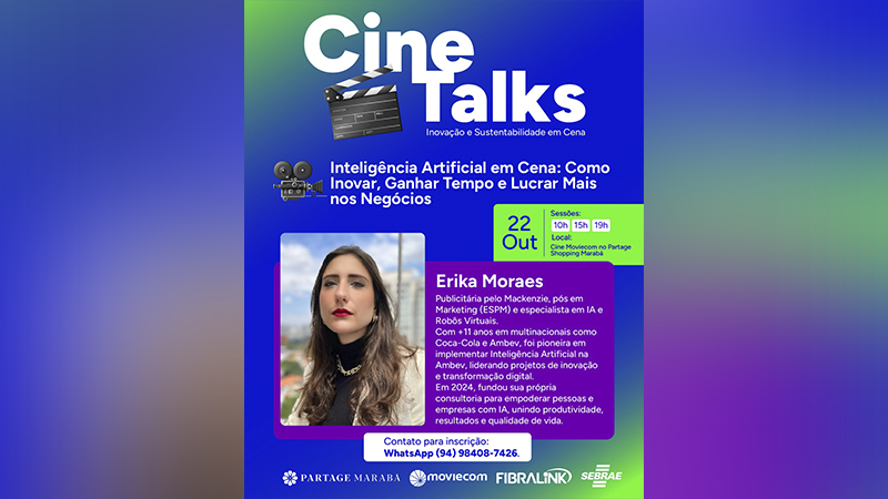 Uma iniciativa inédita em Marabá está levando a discussão sobre o futuro dos negócios para um cenário inusitado: a sala de cinema. O evento “CineTalks – Inovação e Sustentabilidade em Cena” é uma parceria entre Fibralink e Sebrae e acontece nesta quarta-feira (22). A iniciativa, neste formato, é inédita no Brasil e foi idealizada pela Regional Carajás I.