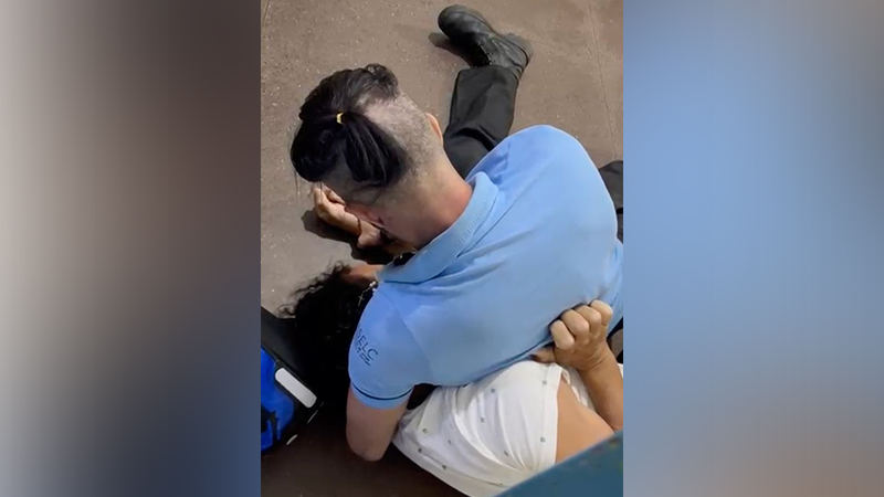 Um vídeo gravado por pessoas que estavam no local e divulgado nas redes sociais mostra um homem não identificado rendendo o agressor e pedindo que chamassem a polícia.