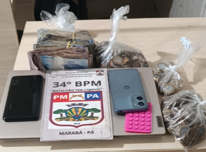 Pouco depois, por volta das 3h30, nas proximidades do Hemopa, os policiais avistaram Marcos Vinícius carregando uma bolsa. Ao perceber a aproximação da viatura, ele tentou fugir, mas foi alcançado e abordado. Dentro da bolsa foram encontrados R$ 1.559, um notebook e dois celulares. O suspeito teria confessado aos militares que furtou os itens após entrar no imóvel pelo telhado.