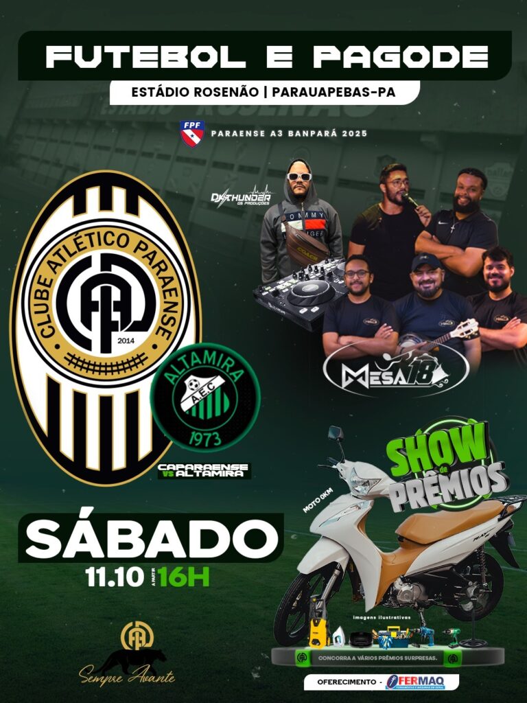 A programação começa às 16h, com a partida entre o Atlético Paraense e o Altamira Esporte Clube, válida pela Série B2 do Campeonato Paraense (A3 Banpará 2025). A equipe entra em campo motivada após uma importante vitória sobre o Gavião Kyikatejê, resultado que aumentou a confiança do elenco e o entusiasmo dos torcedores.