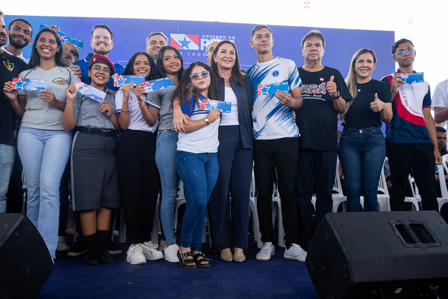 “E nós estamos hoje aqui também por uma razão muito especial, que é a entrega do ‘Bora Estudar’ para alunos e alunas que são os melhores alunos do Estado do Pará. Isso não é pouca coisa, isso é muita coisa. Quero dizer a vocês: eu estou muito orgulhosa de vocês, viu? Eu sei que a educação, por experiência, transforma a vida das pessoas. Qualquer um que tenha oportunidade pode transformar a vida através do trabalho, da educação e também com a ajuda do poder público. Hoje é dia de celebração! E eu celebro a vida de vocês, o futuro de vocês. Continuem no caminho da educação, no caminho do progresso e no caminho de ter uma vida e dar uma vida melhor para a sua família. Então, parabéns a vocês”, disse a governadora aos estudantes que estavam presentes.