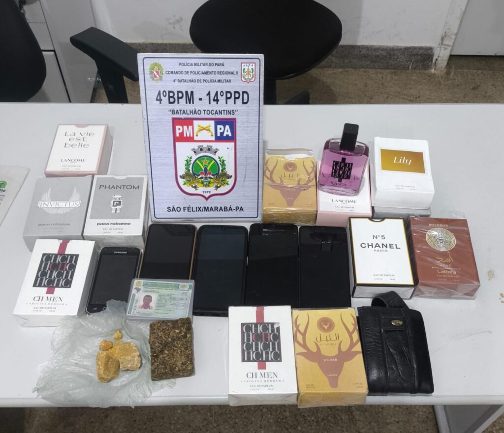 Gilmar Vieira de Oliveira foi apresentado na Delegacia de Polícia Civil na noite deste domingo (22), após ser preso no Residencial Magalhães, em frente a um estabelecimento comercial localizado no Núcleo São Félix, em Marabá. Na residência dele, situada na Rua São José, no São Félix II, foram encontradas maconha, crack, 13 frascos de perfume e cinco aparelhos celulares. O homem teria confessado que os produtos eram oriundos de furto e roubo.