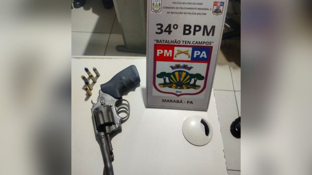 Um homem identificado como Guilherme Carvalho da Silva foi preso por porte ilegal de arma de fogo na madrugada deste sábado (25), em Marabá. Ele foi abordado após ser flagrado dirigindo em zigue-zague e confessou aos policiais que era agiota, utilizando o revólver calibre .38 encontrado em seu carro para realizar cobranças.
