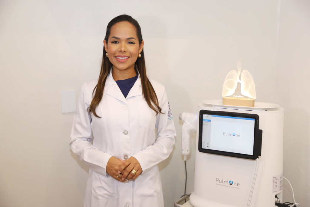 A médica Cláudia Caroline Marques, especialista em saúde respiratória e proprietária da Inspire, explica que a clínica passa a oferecer um exame essencial e inédito na região em relação a pletismografia (exame médico que mede volumes e pressões pulmonares que avaliam a mecânica respiratória). Trata-se de um novo equipamento: uma Minibox, da empresa PulmOne, parceira da Inspire, que realiza espirometria (exame de função dos pulmões que mede a quantidade e a velocidade da respiração do paciente), volumes pulmonares automáticos e teste de Difusão de Respiração Única (DLCO) em apenas 15 a 20 minutos.