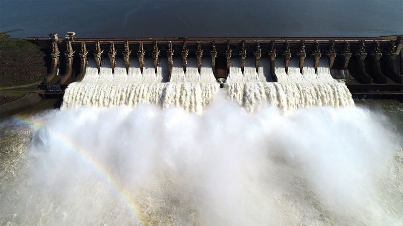 - Barragem e Vertedouro: A barragem principal, do tipo terra e enrocamento, estende-se por 11 quilômetros. Seu vertedouro, equipado com 23 comportas, possui uma capacidade máxima de descarga de 110.000 metros cúbicos por segundo, sendo o segundo maior do mundo.