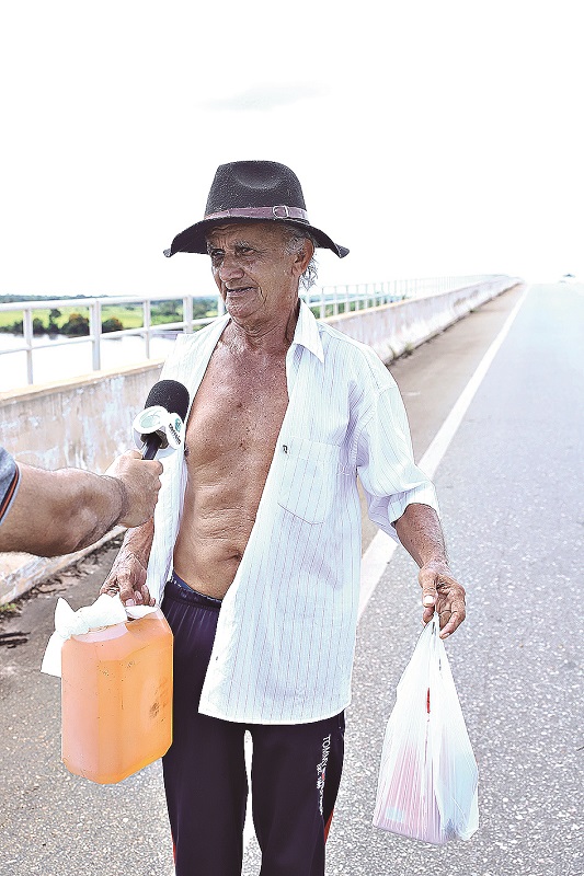 Sobre a ponte fechada aos veículos, a reportagem encontrou o senhor Franscisco de Assis, o Tibúrcio, que vinha retornando de Araguatins com um recipiente contendo gasolina. O idoso foi e retornou a pé. Estava chateado com a interdição repentina. “Eles (Dnit) chegaram aqui de repetente no dia 21 fecharam tudo, sem avisar ninguém, sem fazer uma reunião com o povo, sem colocar uma alternativa aqui pra gente”, reclama.