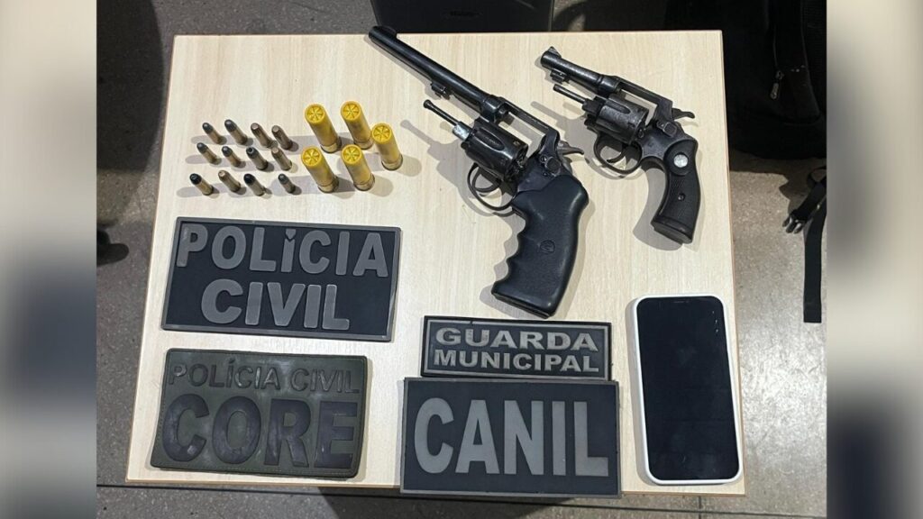 Dois homens foram presos e um terceiro suspeito permanece sob averiguação. O principal alvo da operação, identificado apenas pelas iniciais P.R., conhecido pelo apelido “Dimenor”, foi detido portando duas armas de fogo e diversas munições. Segundo a Polícia Civil, ele possui antecedentes por tráfico e homicídio e é apontado como possível líder do grupo investigado.
