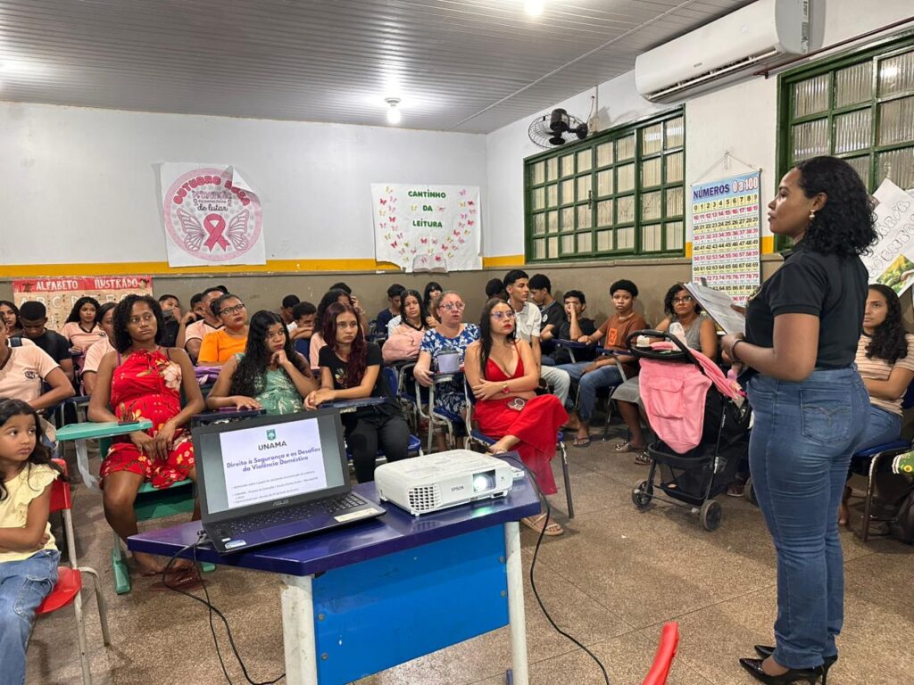 O Projeto de Extensão “Direito à Segurança e os Desafios da Violência Doméstica”, promovido por acadêmicos do segundo período do curso de Direito da Unama (Universidade da Amazônia), chegou na noite desta terça-feira (4) à Escola Estadual de Ensino Médio Gaspar Vianna – Anexo I, localizada na Folha 33, bairro Nova Marabá, região de Integração Carajás.