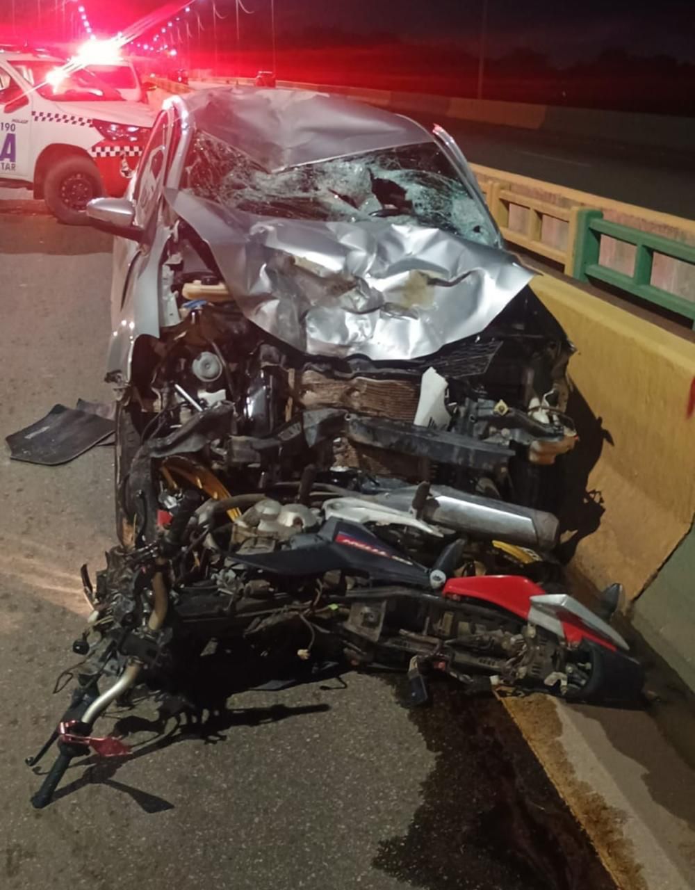 O acidente deste final de semana foi registrado por volta da 1h30. Conforme a Polícia Militar, que atendeu a ocorrência, Everson Bruno Castro Silva, de 22 anos, relatou que conduzia um carro Volkswagen Fox quando tentou fazer uma ultrapassagem e acabou colidindo com as motocicletas que seguiam na direção contrária. A vítima fatal e as feridas estavam nos veículos menores.