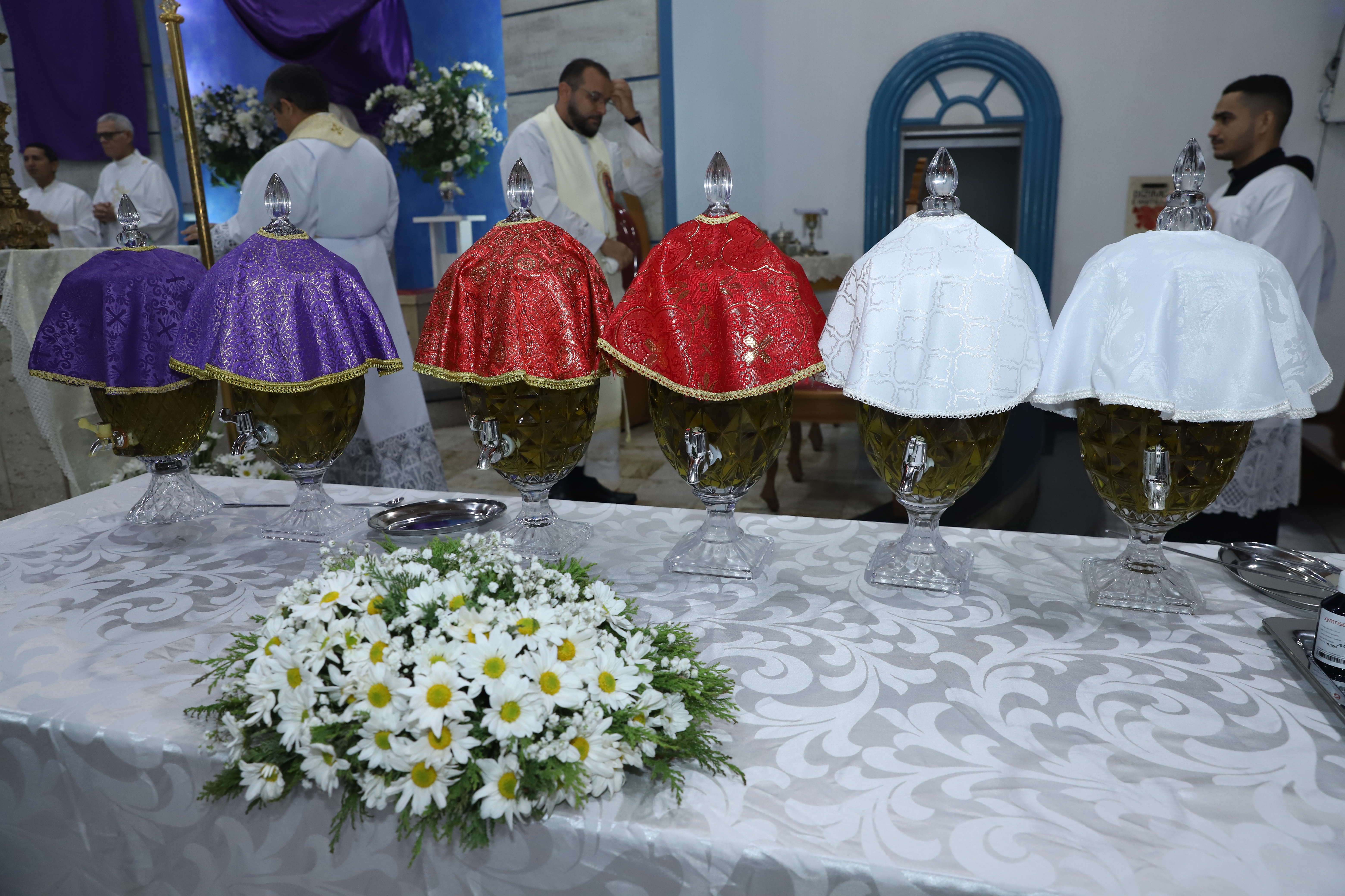 Outro momento marcante é a consagração dos três óleos: o do Crisma, usado em sacramentos como batismo, confirmação e ordenação; o dos Enfermos, utilizado em visitas a doentes para a cura espiritual e física; e o dos Catecúmenos, que simboliza proteção e força durante o batismo.