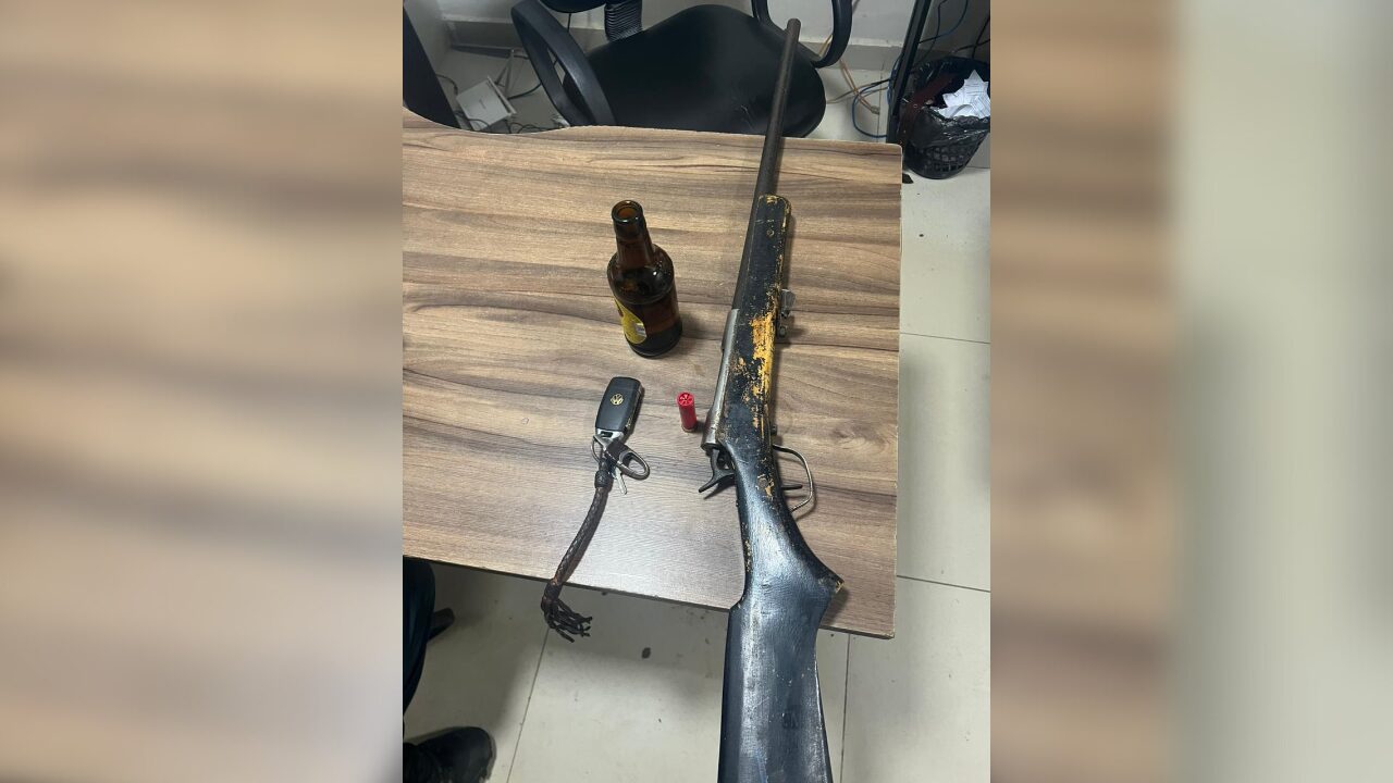 Durante a busca no veículo, os militares encontraram uma espingarda calibre 28, uma munição intacta do mesmo calibre e uma garrafa de cerveja. O material foi apreendido.