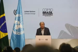 Em coletiva de imprensa nesta quinta-feira (20), décimo dia de atividades da 30ª Conferência das Nações Unidas sobre Mudanças Climáticas (COP 30), o secretário geral da ONU, António Guterres, defendeu que negociações eficientes precisam solucionar a questão dos combustíveis fósseis. A declaração de Guterres chega em meio a uma incerteza sobre a posição do acordo final da conferência a respeito dessa transição. Alguns países se mantêm resistentes a uma ação mais drástica, em especial, os que baseiam suas economias nessas fontes de energia não renováveis.