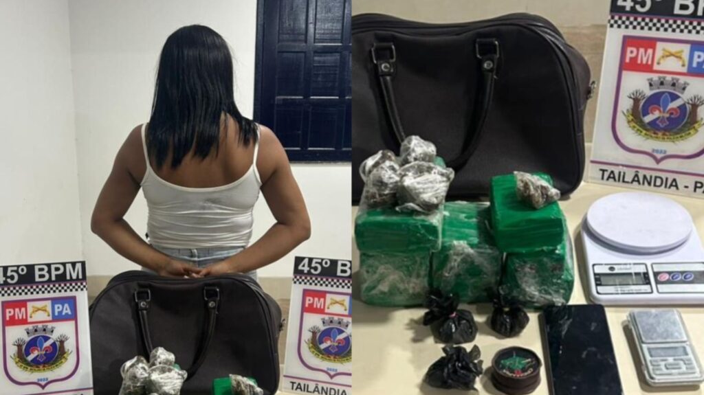 Uma mulher foi presa em flagrante por tráfico de drogas no último dia 4 de outubro, no bairro Daniel Berg, em Tailândia, nordeste do Pará. A prisão foi efetuada pelo 45º Batalhão de Polícia Militar (45º BPM) após a suspeita, que trafegava de motocicleta, demonstrar nervosismo durante uma abordagem de rotina.