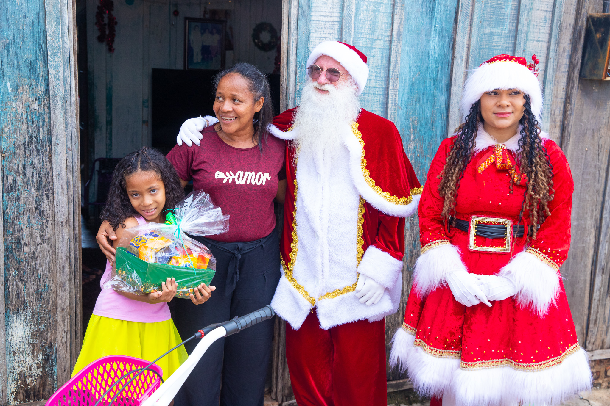 Em uma casa simples de madeira, Milena observava atenta o movimento na rua quando percebeu algo diferente. Logo, vieram as batidas à porta de um dos maiores símbolos desta época do ano. Sim, era o Papai Noel, de mãos cheias e coração aberto.