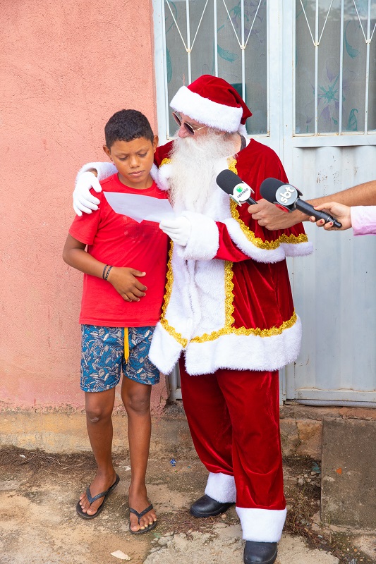 A primeira parada foi na Folha 8 – debaixo de um leve chuvisco – no lar da pequena Milena, que enviou sua cartinha por meio da escolinha NEI Marluse Ferreira. No texto tocante, a menina pedia uma bicicleta e uma cesta básica, desejo que certamente ajudaria na ceia de Natal.