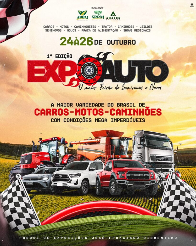 Com a proposta de fomentar o mercado automotivo de Marabá, o Sindicato dos Produtores Rurais de Marabá, em parceria com a empresa Amazon Eventos, realiza, entre os dias 24 e 26 de outubro, a primeira edição da ExpoAuto. O evento, que ocorrerá no Parque de Exposição José Francisco Diamantino, na BR-155, promete ser a maior feira de veículos novos e seminovos da região, unindo oportunidades de negócio e lazer em um único espaço.