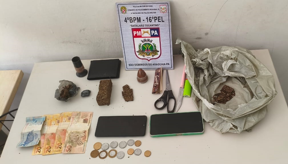 Durante patrulhamento de rotina no Bairro Liberdade, em São Domingos do Araguaia, no último sábado (18), por volta das 11h, uma guarnição da Polícia Militar prendeu um homem identificado como Rafael Ribeiro Santos, conhecido como “Mãozinha”, acusado de envolvimento com o tráfico de drogas na cidade.