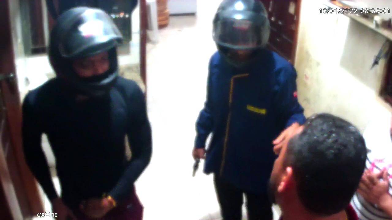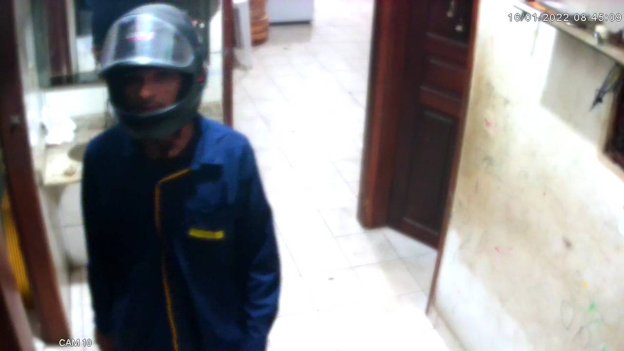 Ambos os assaltantes estão vestindo roupas pretas — camisa de manga longa e calça — com capacetes de motociclistas para esconder o rosto. Os dois procedem com o assalto, que fora denunciado por volta das 9 horas e teve os suspeitos localizados por volta das 16 horas do mesmo domingo. Outros cinco suspeitos de envolvimento no assalto foram ouvidos e liberados pela Polícia Civil.