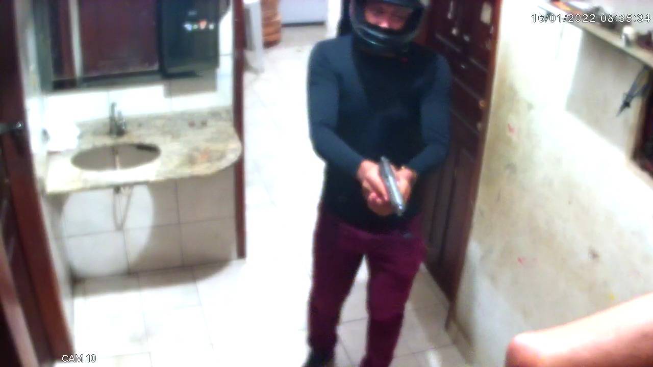 No vídeo, registrado na madrugada do último domingo (16), Kaio Lucas aparece em primeiro momento rendendo o dono do bar, apontando uma arma de fogo. Gabriel aparece logo atrás, com um funcionário rendido, também com arma de fogo empunhada.