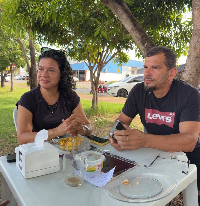 Um desses pontos é o café da manhã Adoradores do Rei, localizado na VP-7, próximo à praça da Folha 16. A recepção é calorosa. A equipe da reportagem foi bem atendida e pediu uma tapioca com carne desfiada, o clássico pão com ovo e uma xícara grande de café com leite. Tudo é feito ali mesmo, da montagem dos pratos à lavagem das louças, sempre com transparência. À sombra das árvores, o ambiente fica mais fresco, acompanhado de boas conversas. As atendentes, com sorrisos tímidos, preferiram não conceder entrevista, mas entre a simplicidade do espaço, com mesas e cadeiras espalhadas pelo canteiro, fica evidente o cuidado dedicado a cada freguês.