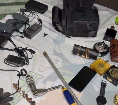 Na mesma noite, os policiais localizaram um imóvel onde foram encontrados cerca de R$ 100 mil em bens, incluindo equipamentos eletrônicos, além de uma motocicleta e um carro. Entre os itens apreendidos estavam drones, bloqueadores de sinal de celular e outros dispositivos utilizados em invasões a residências.