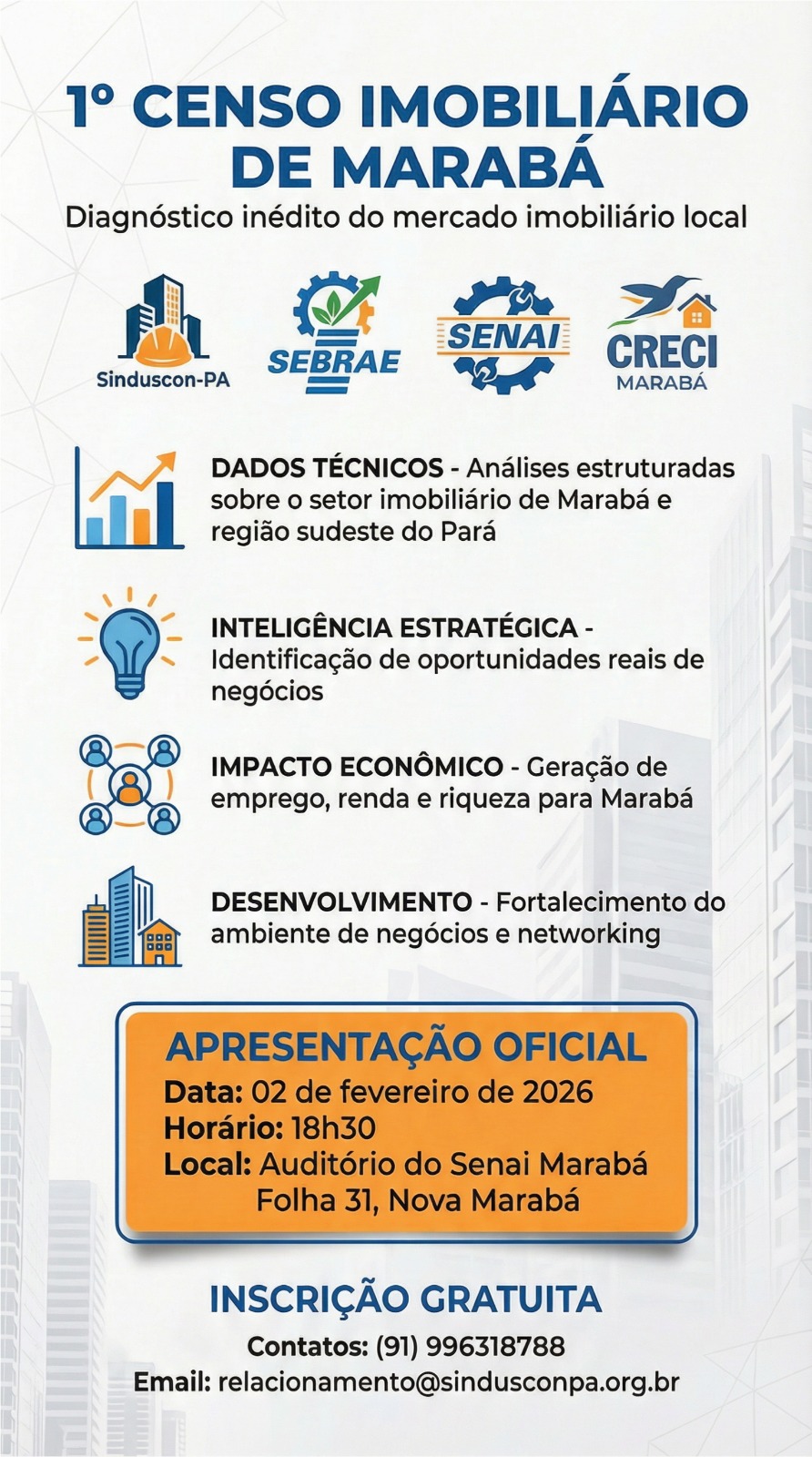 O evento tem como foco apresentar dados do estudo sobre a ascensão de Marabá no setor imobiliário