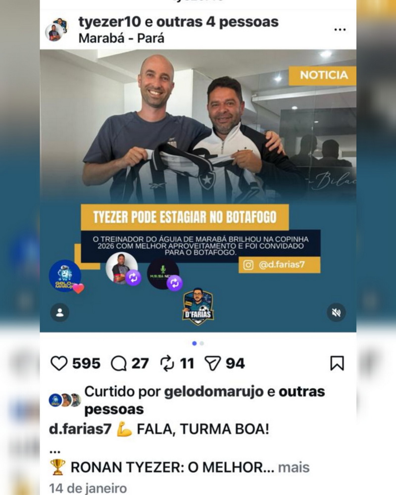Uma promessa de amizade, selada pela paixão ao futebol, foi cumprida de forma póstuma em Marabá. O empresário Jânio Lara, um torcedor fervoroso do Botafogo-RJ, recebeu a camisa oficial do seu time de coração, um presente que havia sido prometido por seu amigo Ronantyezer Rodrigues, o Tyezer (in memoriam), técnico do time sub-20 do Águia de Marabá. A entrega, carregada de simbolismo, aconteceu após o trágico falecimento do treinador, vítima de um acidente rodoviário.