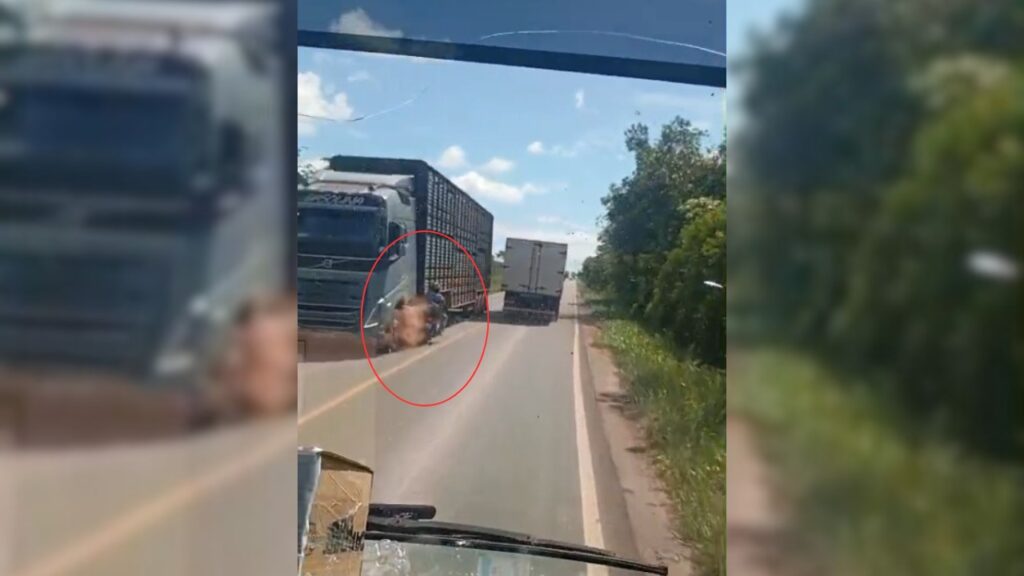 Um motociclista, ainda não identificado, ficou ferido após se envolver em um acidente durante uma ultrapassagem na rodovia que corta o município de Eldorado do Carajás. O acidente aconteceu na tarde desta terça-feira (20), nas proximidades da Vila das Bananas, e imagens registraram o momento em que a motocicleta é atingida por um caminhão que vinha no sentido contrário, provocando a queda do condutor no meio da pista e uma sequência de colisões.